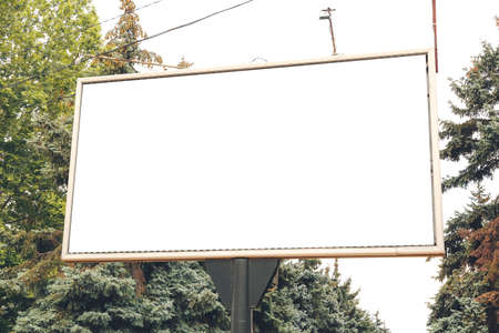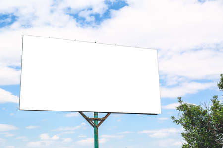Blank billboard mockup with white screen. Against the backdrop of nature and blue sky. business concept. Copy space banner for advertising