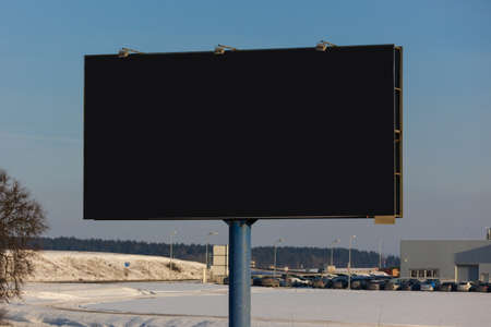 Background for design. Advertising billboard along the road in the city on a winter sunny day