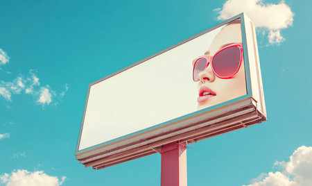 A blank billboard against a blue sky background, with white space for text and copy. The billboard is empty of any graphics or images, ready to be used as an advertising platform. It's a wide format, perfect for outdoor advertisement use. This mockup creates a clean canvas that can convey your message and product information. A large digital billboard in daylight, showcasing its simplicity against a bright blue sky. --ar 5:3 --v 6.1 Job ID: 40b23134-b4de-4ec4-8c10-de446cb05ed2