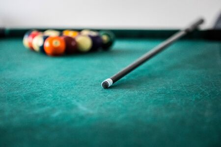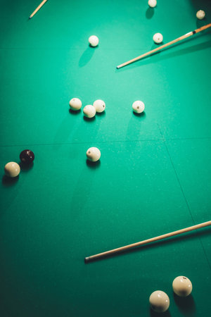 Playing billiard. Billiards balls green billiards table. Billiard sport concept. Pool billiard game.