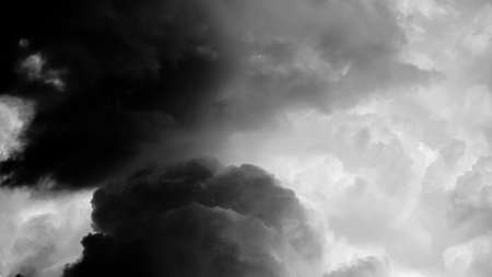Dark dramatic sky and clouds. Background for death and sad concept. Black sky and white fluffy clouds. Sad and moody sky. Beauty in nature. Dead abstract background. Beautiful pattern of clouds.