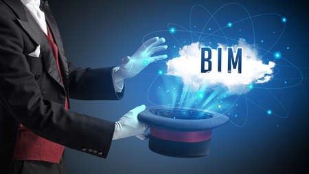 Magician is showing magic trick with BIM abbreviation, modern tech concept