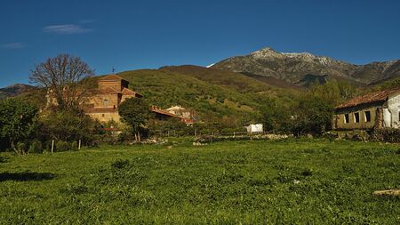 Picturesque rural traditional mountain village in Asturias. Asiegu, Spain