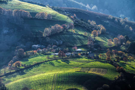 View of Soto de Agues village in Asturias, northern Spain, in autumn