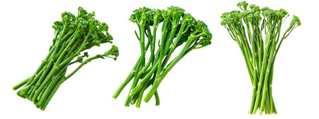 Fresh broccolini isolated on white background with copy space