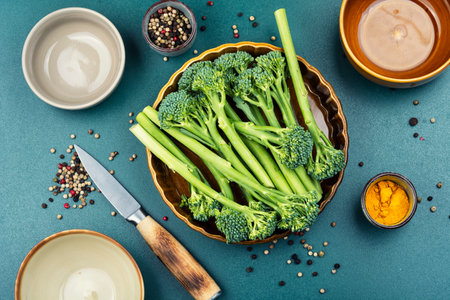 Raw broccolini green vegetable. Healthy organic food, close-up