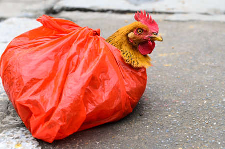 Chicken in a cage ready to be slaughtered
