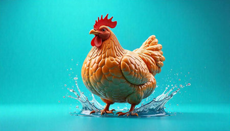 Chicken swims gracefully underwater. Generative AI