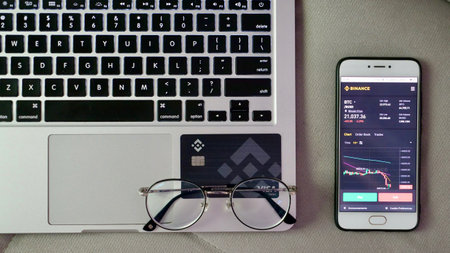 Tyumen, Russia - JULY 18, 2019: Binance mobile app running on smartphone