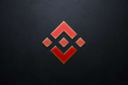 New York, USA - 26 April 2021: Binance app logo on phone screen close-up top view, Illustrative Editorial