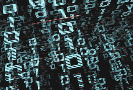 Digital, informacion concept backdrop. Zeroes and ones in white background. Digital 3D render.