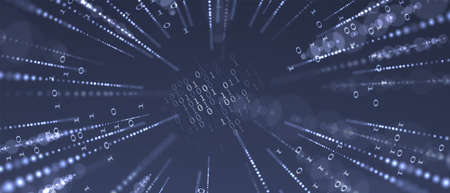 Colorful digital binary data digits and streaming binary code background with light beams