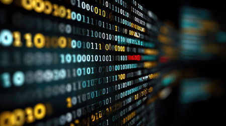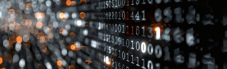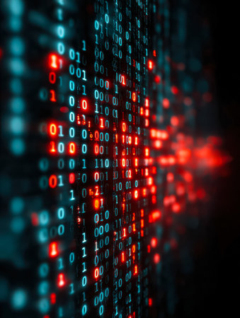 A visually striking abstract representation of a digital binary code stream, featuring glowing numbers that symbolize data processing and modern technology.