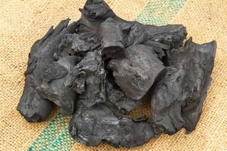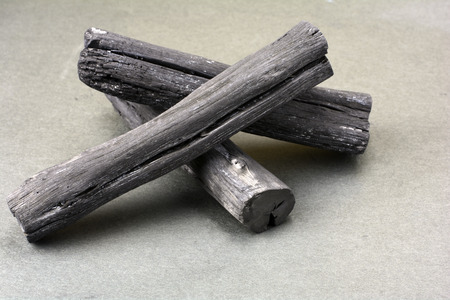 Group of charcoal black color made from real wood in studio close-up shot which use for cooking or absorb odor in room or refrigerator. And use in some cosmetic industry.