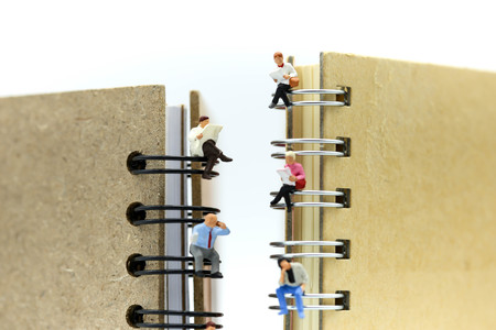 Miniature people : reading stand on book using as background education or business concept.