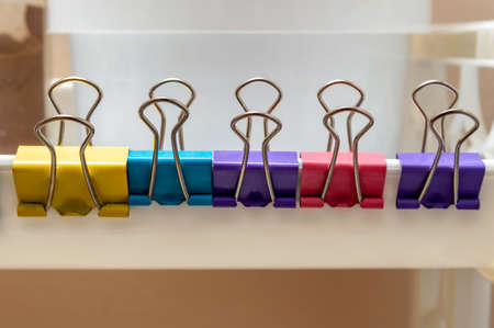 Set of multi-colored clips for folders on a white background. copy space