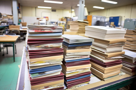 A vibrant display of stacked papers in a printmaking studio highlights the creative potential of various colors and textures, perfect for artists and crafters.