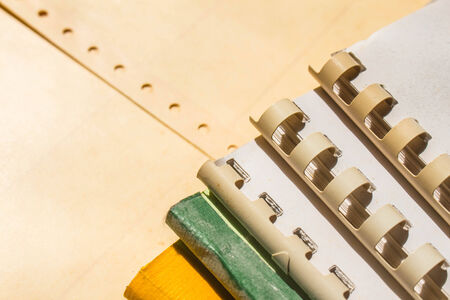 Stack of ring binder notebooks background texture. Ideal for Back to school and office work concept.