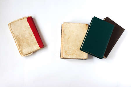 Background of old shabby books. Long background of vintage educational books and encyclopedias. The background of studying books old.