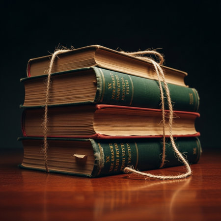This image showcases an elegant stack of vintage books tied with a ribbon, resting on a wooden surface, embodying a cozy aesthetic perfect for home decor.