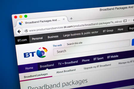 LONDON, UK - OCTOBER 20TH 2015: The homepage of the official website of British Telecom, on 20th October 2015.