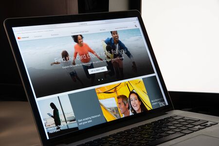 BELGRADE, SERBIA - MARCH 9, 2020: Mastercard web site on computer screen. Mastercard is an American multinational financial services corporation founded at 1966.