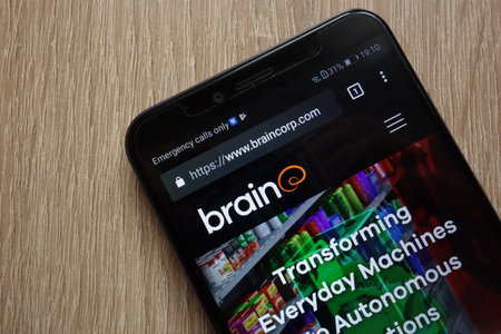 KONSKIE, POLAND - JULY 26, 2018: Brain Corp website is displayed on a modern smartphone