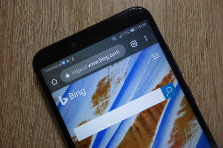 KONSKIE, POLAND - December 09, 2018: Bing website (www.bing.com) displayed on smartphone. Bing is a web search engine owned and operated by Microsoft