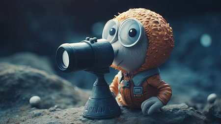 Spy watching outdoors through camera lens, searching for discovery generated by artificial intelligence