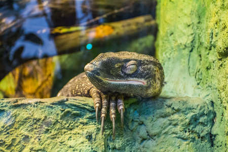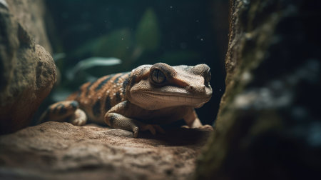 Close-up portrait of a beautiful amphibian in the forest.