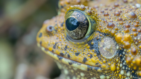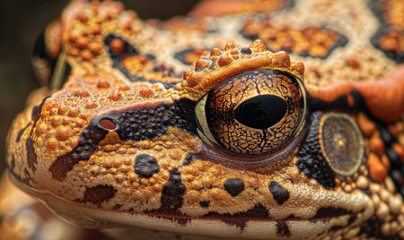 Macro shot capturing the intricate patterns and textures of a toad's eye, reflecting the complexity of amphibian anatomy.