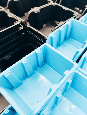 Colorful Storage Bins Stacked in a Warehouse for Efficient Organization and Easy Access to Various Items. Generative AI