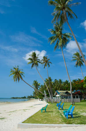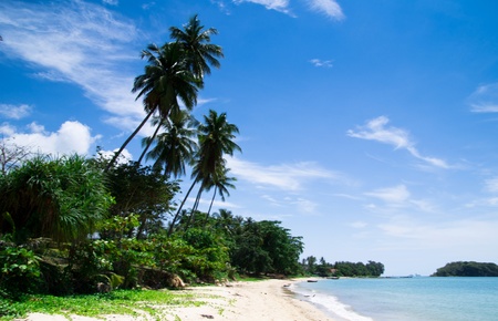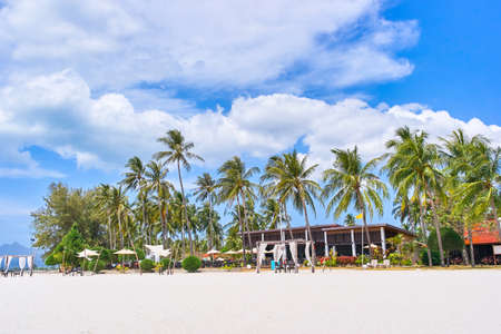 Bangsak beach in blue sky and palm trees at khao lak Phangnga province, Thailand.