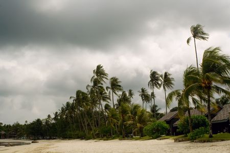After the storm. The beach of Koh Samui and scenic rock after the flood and storm