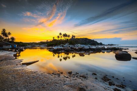 Amazing seascape sunrise with boat in George Town, Penang, Malaysia