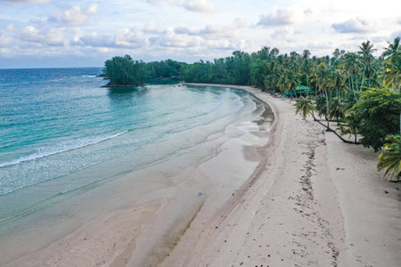 Aerial view sea beach turquoise water nature landscape Koh Kood, Thailand