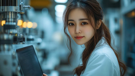 Young female engineer working in a high-tech factory engineering, technology, and manufacturing.