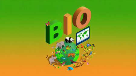 Isometric BIO Concept with Global Wildlife, DNA Helix, and Digital Ecology