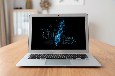 Medical science technology and futuristic healthcare virtual computer software analyze human health and diagnose disease for doctor data and medical research. brisk