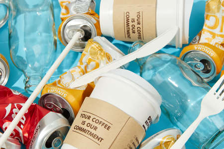 Disposable eco-friendly recycling packaging on a white background. Reusable raw materials