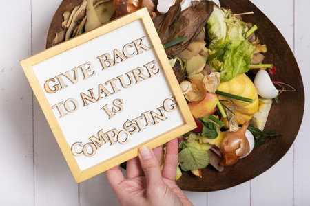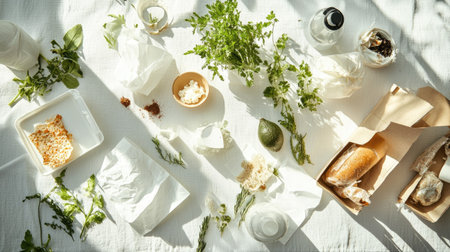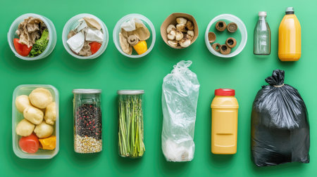 background with a zero-waste lifestyle theme, showing casing reusable items, composting bins, and sustainable alternatives to single-use plastics. Generative AI