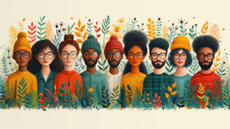 Harmony in Diversity: Illustrated Group Portrait with Botanical Elements