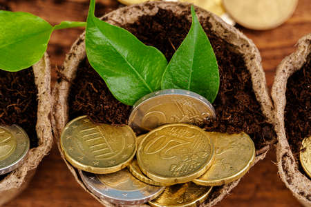 Concept for business growth and investmentReturn on investment concept and saving money Seedling