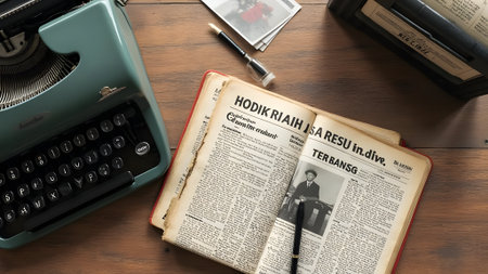 A person examines an old portrait in a collection of vintage photographs, surrounded by aged images and memorabilia, evoking nostalgia and curiosity about the past.
