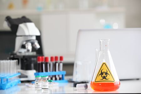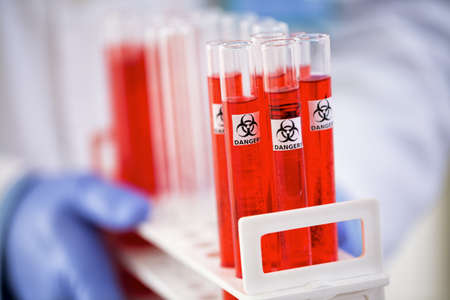 Coronavirus 2019-nCoV Blood Sample. with sign danger lab for vaccine
