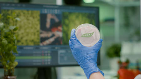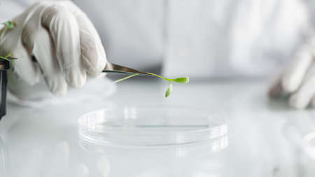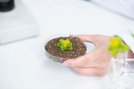 Genetically modified plant tested in petri dish .Ecology laboratory