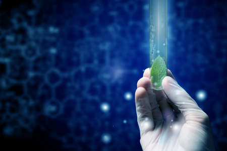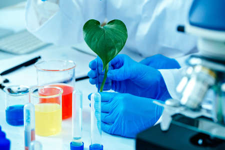 scientist observed green leaf in laboratory glass