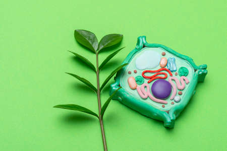 Model of plant cell on green background. Green world and education concept