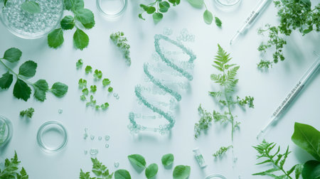 A captivating arrangement of fresh herbs alongside laboratory tools, highlighting the intersection of nature and science. Ideal for health and wellness themes.