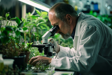 A biologist studying plant samples under a microscope --ar 3:2 Job ID: cf7e3265-212e-4bee-87b9-14d9cfb310b0
